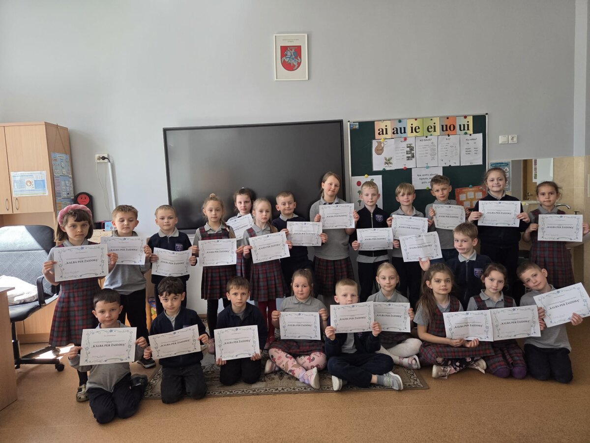 Projekto metu daug dėmesio skirta vaikų kalbinių gebėjimų ugdymui pasitelkiant žaidybinius metodus. Pagrindinis projekto tikslas – lavinti mokinių žodyną, garsų tarimą bei gebėjimą įvardinti daiktus per žaidimą. Taip pat siekta, kad pirmokai įgytų pagrindinius įgūdžius, reikalingus aiškiam ir taisyklingam kalbėjimui, stiprinant liežuvio, lūpų ir kvėpavimo raumenis įvairių logopedinių pratimų metu. Užsiėmimų metu vaikai mokėsi taisyklingai tarti sudėtingus garsus, atskirti panašiai skambančius garsus bei lavino foneminę klausą. Jie buvo skatinami atpažinti netaisyklingą tarimą ir patys taisyti savo klaidas. Taip pat mokiniams suteikta praktinių įgūdžių, padedančių įveikti kalbėjimo sunkumus. Be to, projekto metu buvo atliekamos ir rašymo užduotys – mokiniai rašė diktantą, lavino atmintį bei gebėjimą susikaupti. Šios veiklos padėjo stiprinti ryšį tarp girdimos ir rašomos kalbos. Projekte buvo taikomi įvairūs metodai ir priemonės: artikuliaciniai pratimai, žaidimai, kortelės bei kitos įtraukiančios veiklos, kurios padėjo vaikams lengviau įsisavinti taisyklingą garsų tarimą. Buvo kuriama saugi ir motyvuojanti aplinka, skatinanti mokinių aktyvumą ir norą tobulėti. Pasibaigus projektui, visi dalyviai buvo apdovanoti padėkos raštais už aktyvų dalyvavimą ir pastangas.