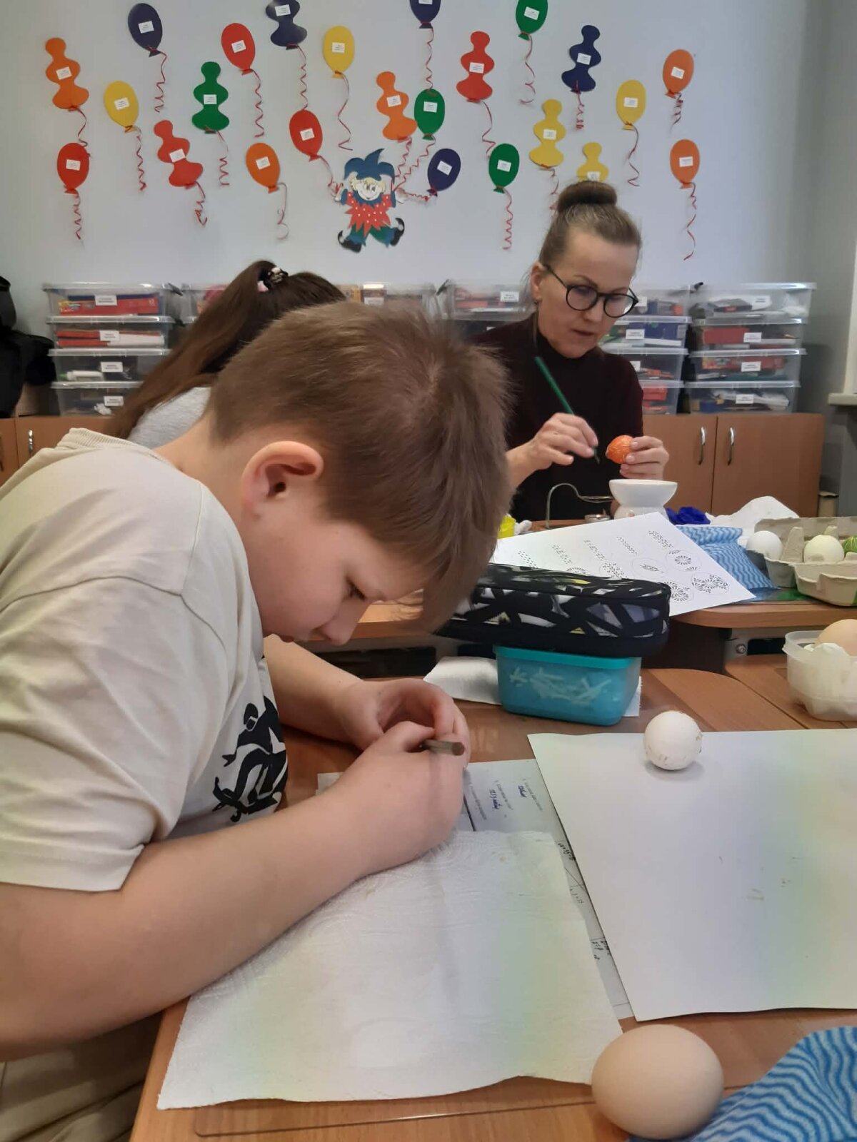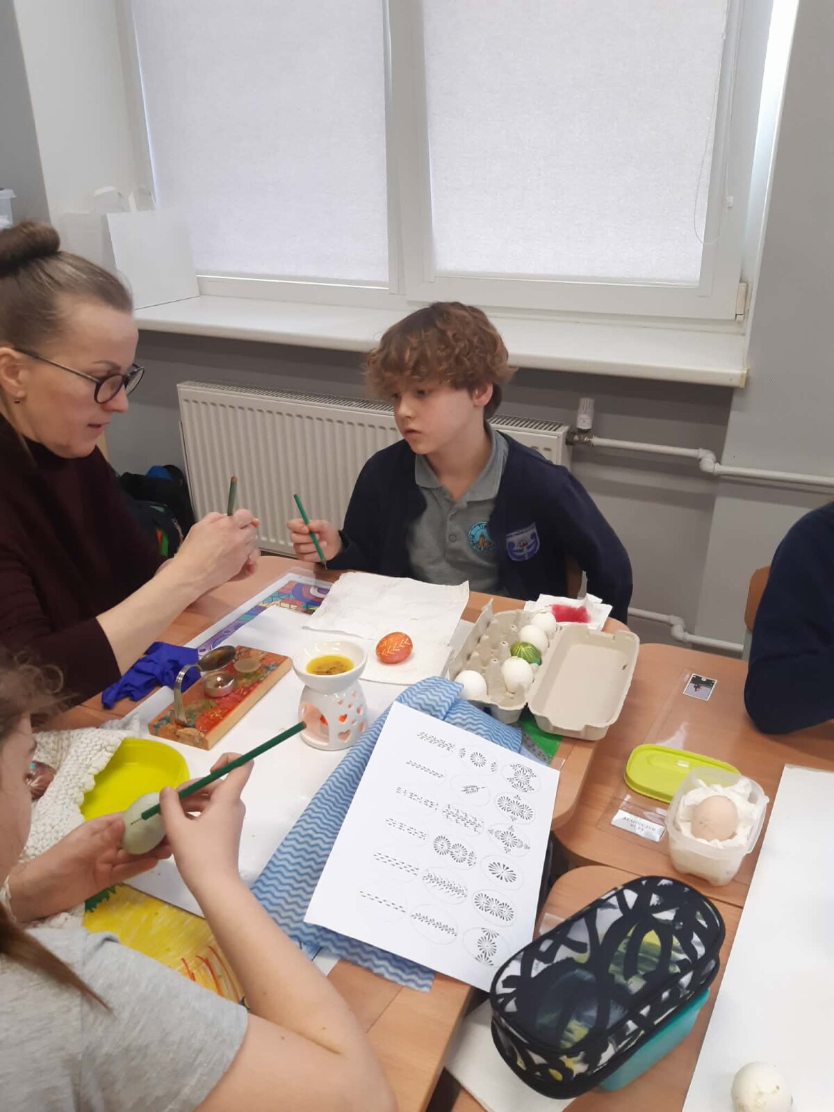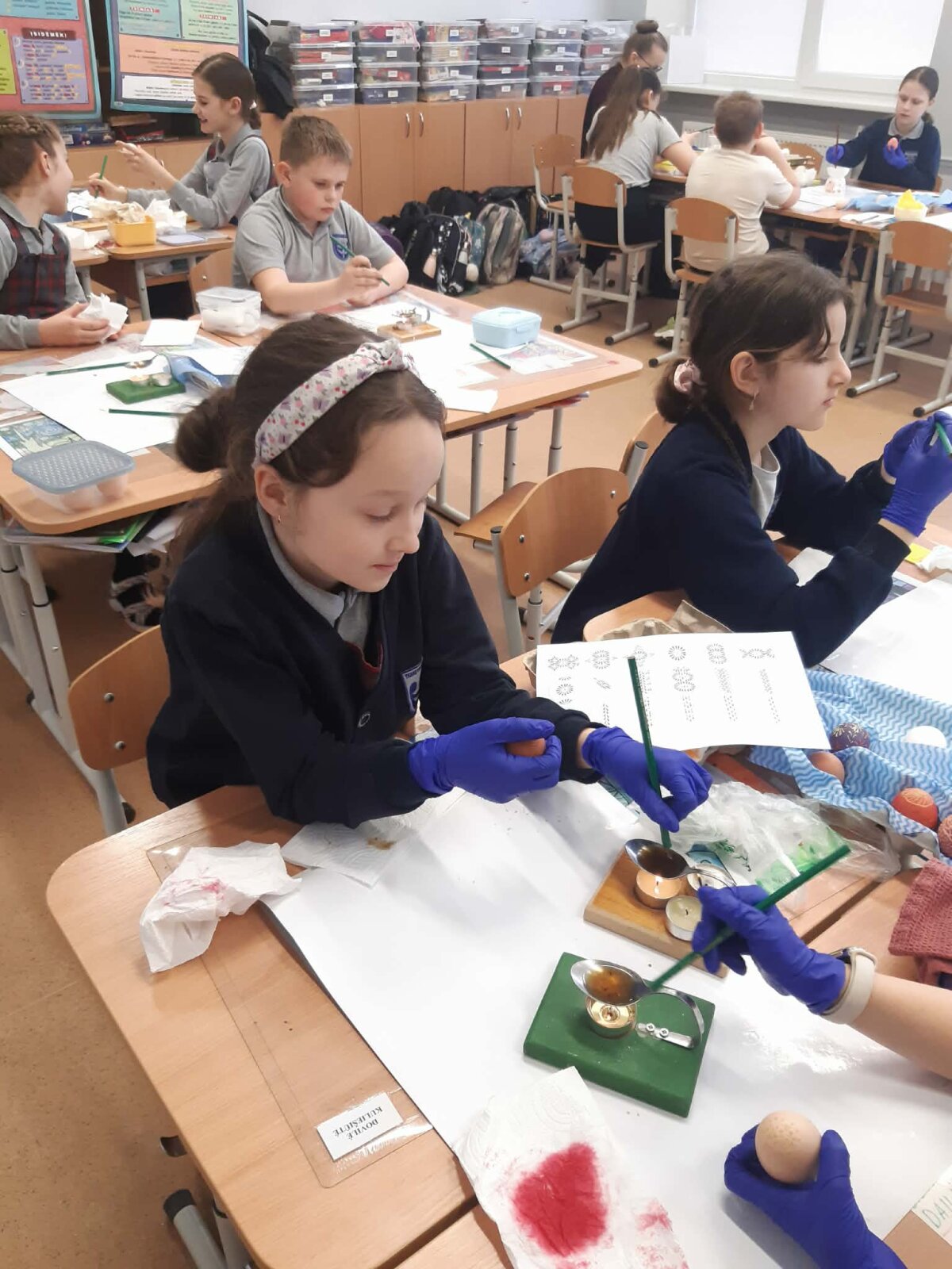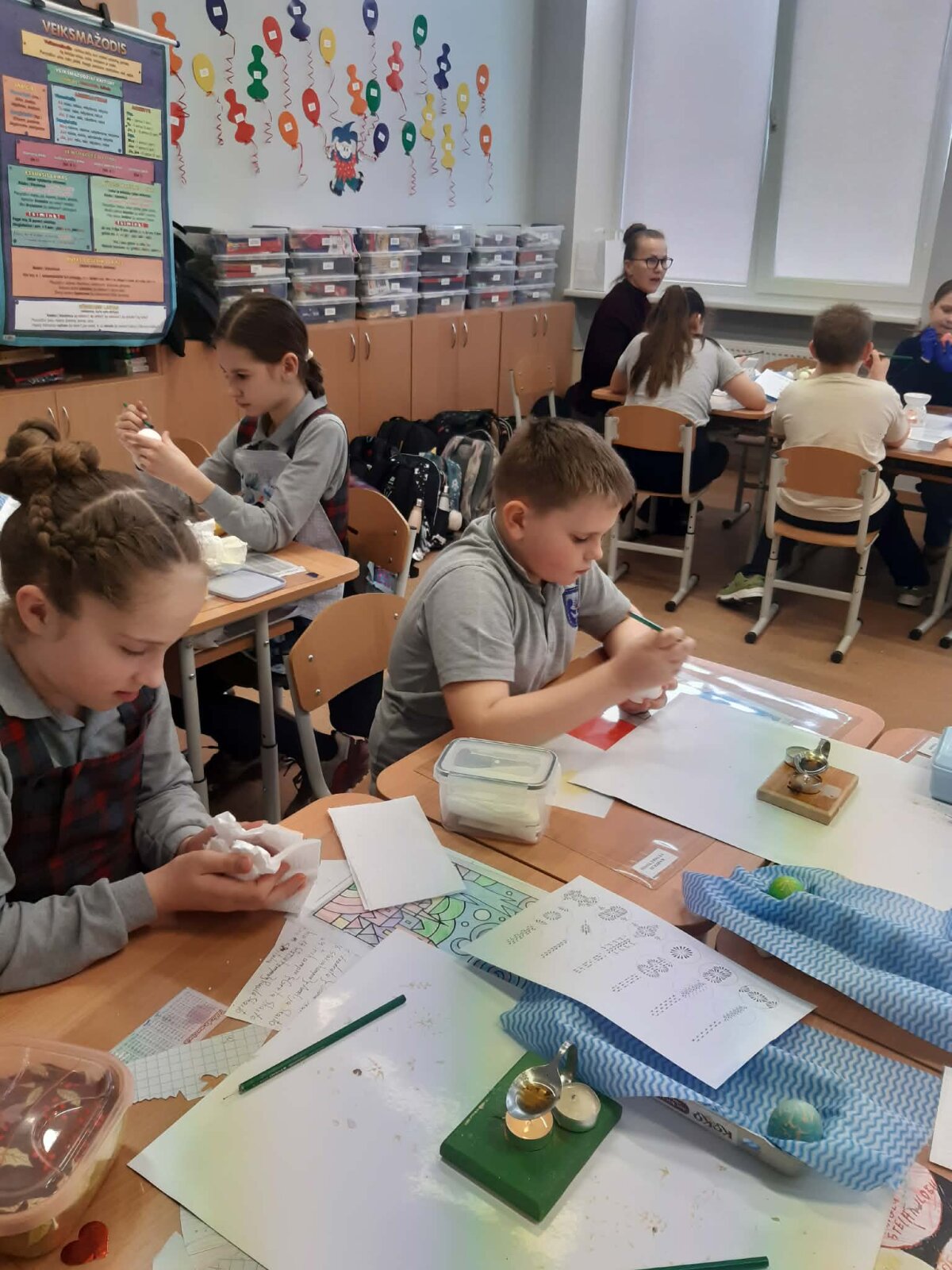 Per Gandrines į 3d klasę atvyko vieno iš mokinių močiutė Monika, kuri dalijosi patirtimi, kaip vašku išmarginti kiaušinius. Mokiniai kūrybiškai piešė margučių raštus. Kiaušinius nudažė. Margučius sudėjo į pagamintus krepšelius ir nešė namiškiams dovanų.