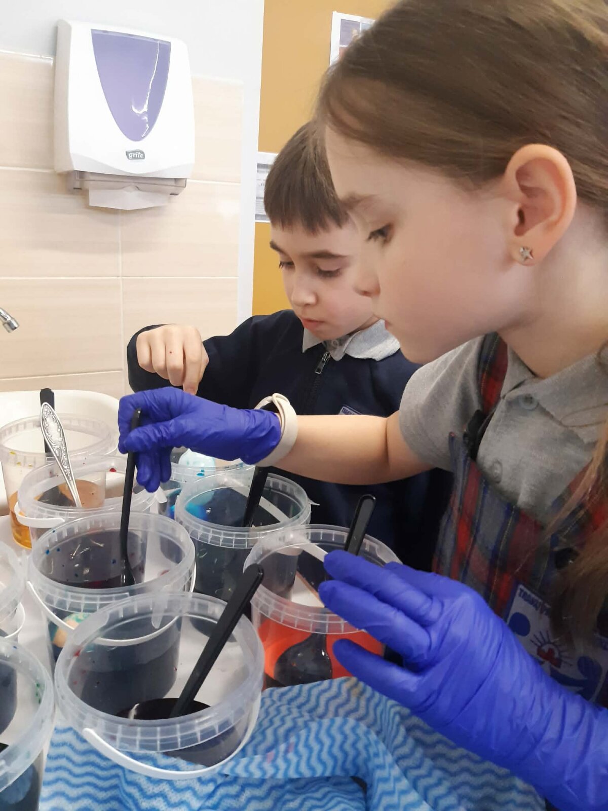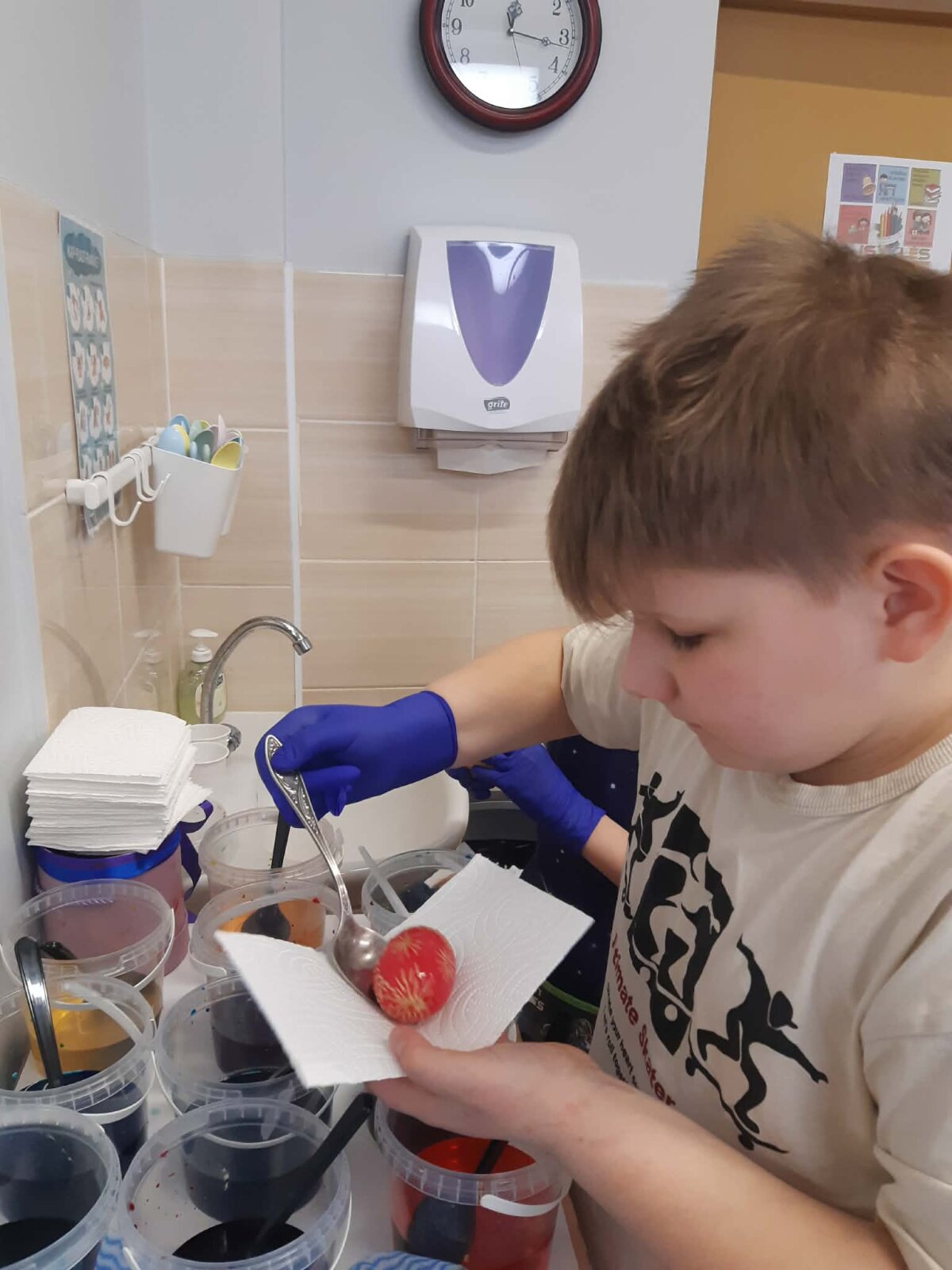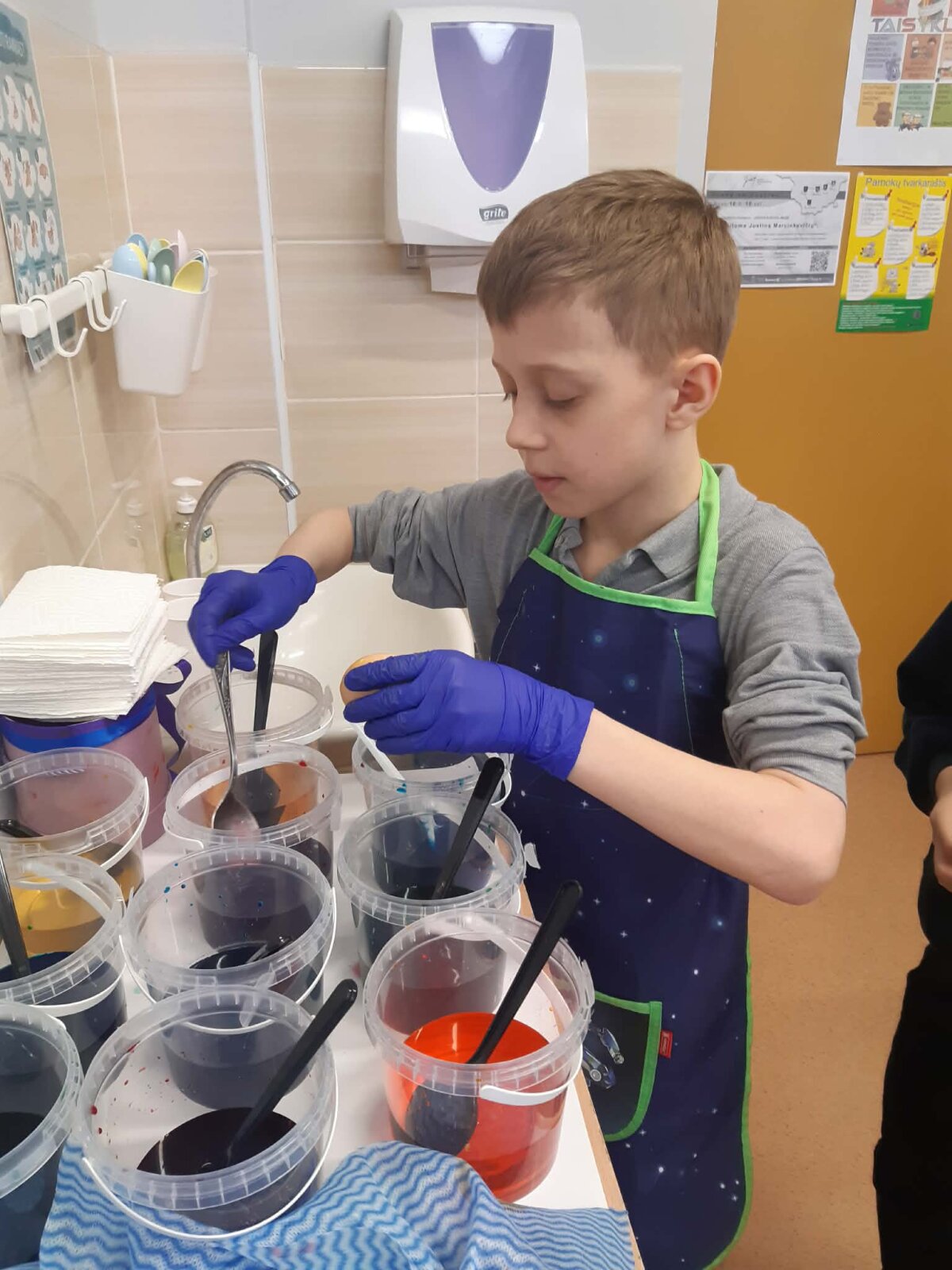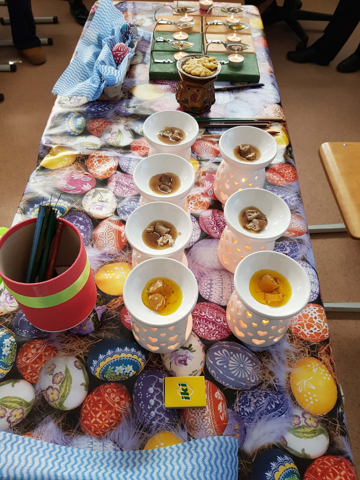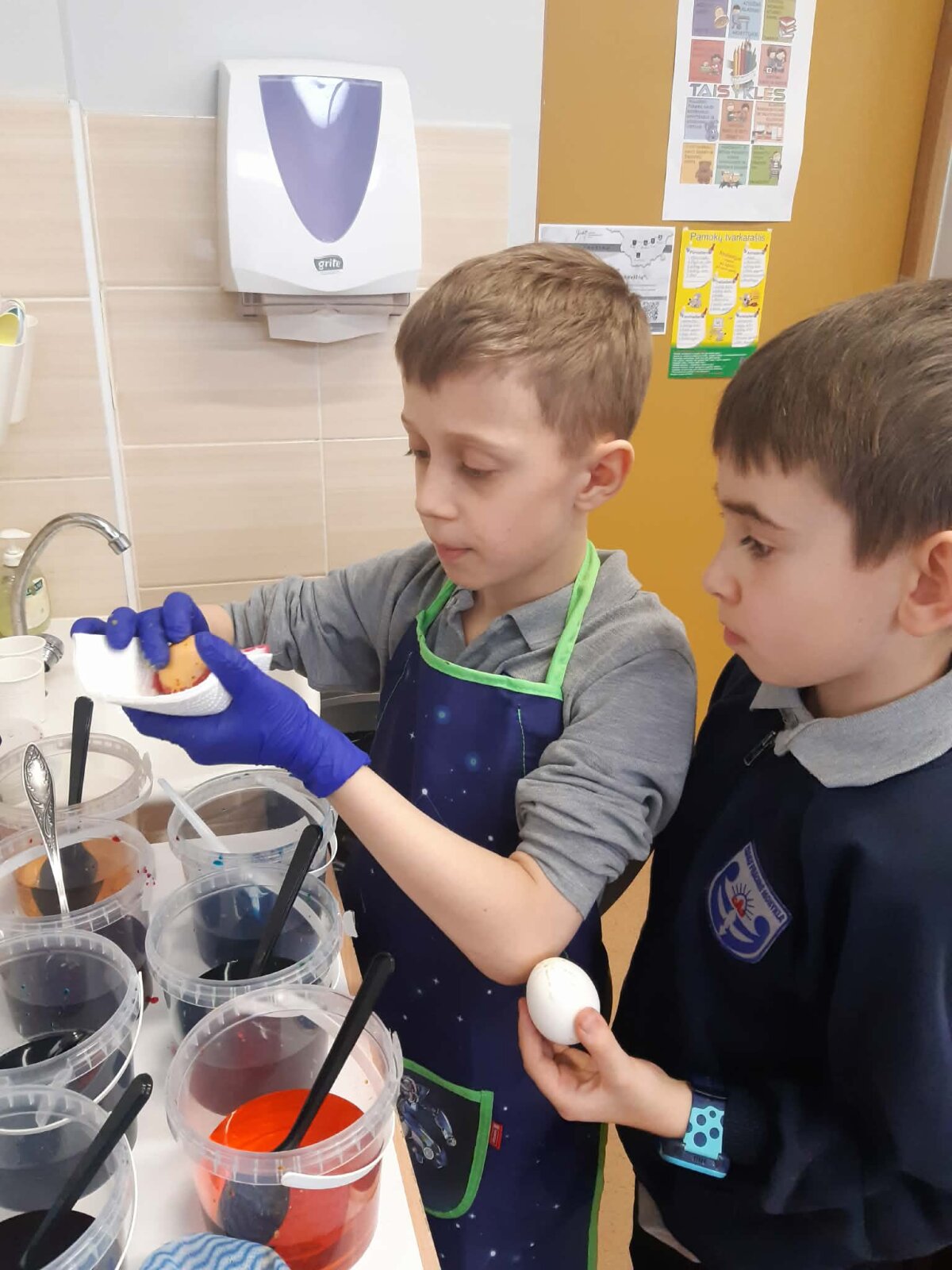 Per Gandrines į 3d klasę atvyko vieno iš mokinių močiutė Monika, kuri dalijosi patirtimi, kaip vašku išmarginti kiaušinius. Mokiniai kūrybiškai piešė margučių raštus. Kiaušinius nudažė. Margučius sudėjo į pagamintus krepšelius ir nešė namiškiams dovanų.