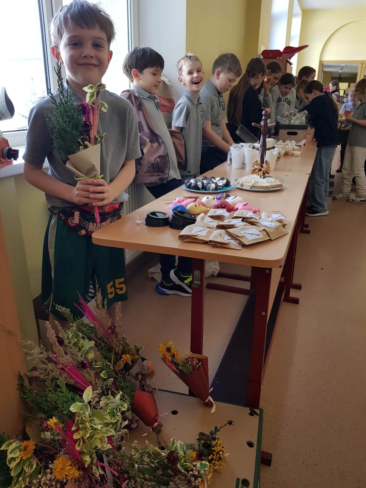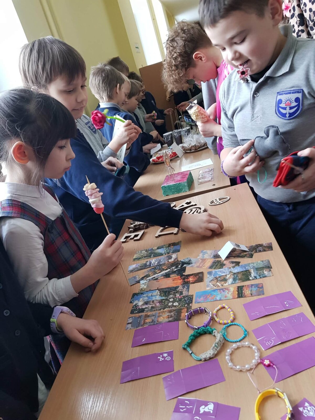 Kovo 4-ąją Lietuvoje minima Lietuvos globėjo šv. Kazimiero diena, o Lietuvoje organizuojamos Kaziuko mugės. Mūsų mokykla neliko nuošalyje ir kovo 5,6 dienomis koridoriuose šurmuliavo mugės dalyviai ir pirkėjai. Vaikai, mamyčių ir močiučių padedami, prekiavo saldumynais, galanterijos gaminiais, savo rankų kurtais darbeliais ir, žinoma, verbomis! Kiekvienas pardavėjas prekiaudamas tobulino savo komunikacinius įgūdžius, mokėsi apskaičiuoti, kiek pinigėlių išleido produktams ir kokį uždarbį gavo. O jau linksmybių ir juoko tikrai netrūko!